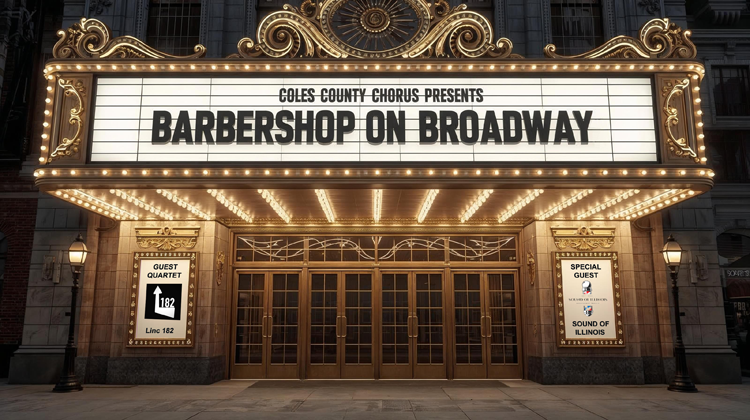 Coming June 13, the Coles County Chorus 2026 Summer Show “Barbershop On Broadway” brings some of you favorite show tunes to the Doudna Fine Arts stage. We will be joined by the 2025 international qualifier chorus Sound of Illinois and the 2025 Illinois championship quartet Linc 182. Ticket and more show information will be coming soon!